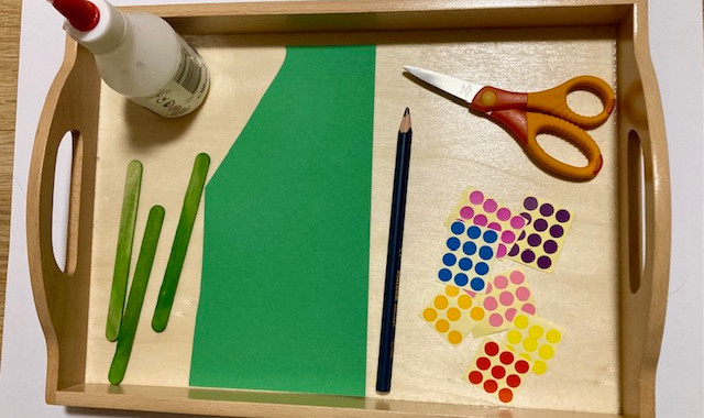 Mit dem Strohhalm Löcher hineinstechen, sodass der Baum aufgehängt werden kann.